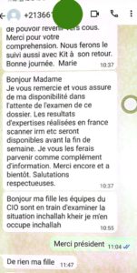 Et nous en avons la trace. Dans un message que nous avons pu consulter, Mustapha Berraf promet de faire suivre, dès réception, la suite du dossier médical : imageries, bilans, analyses. Le tout sans déclaration publique, sans transmission formelle à l’État algérien, et dans un silence soigneusement entretenu.